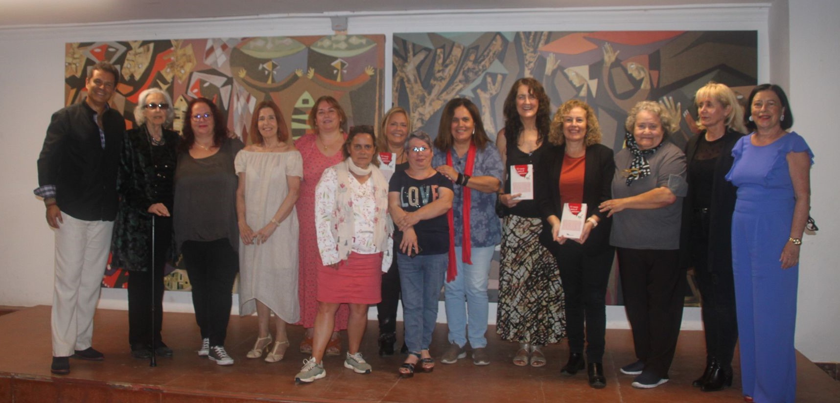 El evento de presentación contó con la participación de once de las autoras incluidas en la antología que deleitaron con sus creaciones a un numeroso público asistente (de izquierda a derecha): Josefa Molina, Maruja Salgado, Inma Flores, Dunia Sánchez, Margarita Otero, Olivia Falcón, Alicia Llarena, Teca Barreiro, Mar Zeraus y Berbel. En la foto también se encuentran Saulo García, pianista y tenor; Rosa María Martinón, hija ilustre de Gáldar; Rosetta Martinón, secretaria de la Asociación Astronómica y Educativa de Canarias ‘Henrietta Swan Leavitt’ y Soledad Quesada, representante del área de Cultura del Casino de Gáldar.