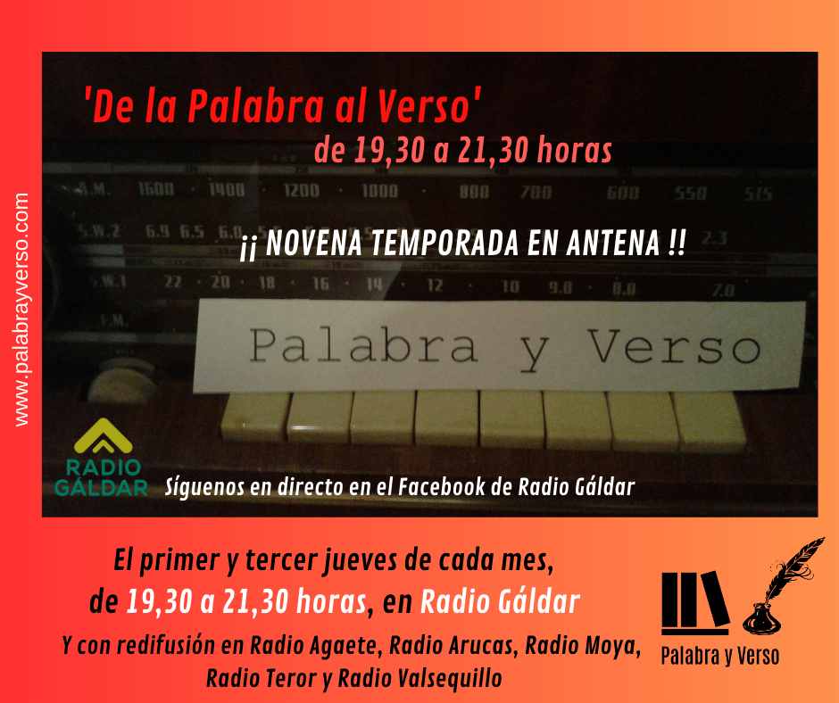 Recuerden que pueden escuchar este y todos los programas emitidos en estas ocho temporadas de ‘De la Palabra al Verso’ en la sección de Escúchanos de palabrayverso.com así como suscribirse al podcast Palabra y Verso de forma gratuita en ivoox.com y escuchar el programa cuando les apetezca.