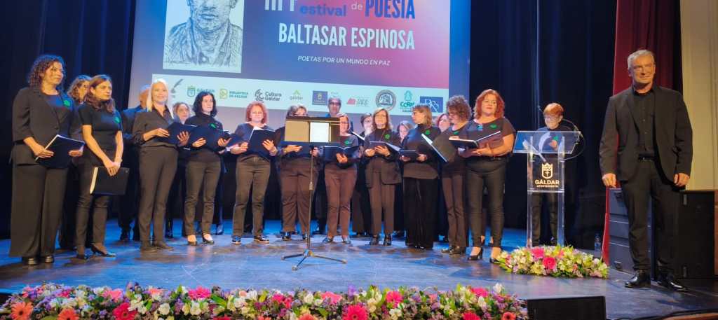 El evento, que contó con un teatro desbordante de público, concluyó con la actuación de la Coral Polifónica de Gáldar, quien embelleció con sus voces una intensa velada de poesía.