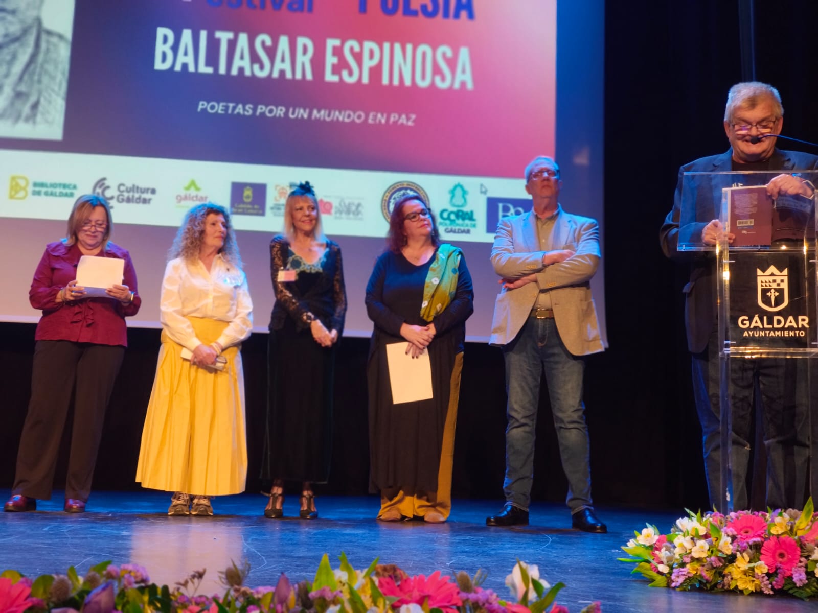 Un rebosante teatro galdense acogió la inauguración del III Festival de Poesía Baltasar Espinosa, con la lectura del Manifesto de ‘Poetas por un Mundo en Paz’ y la entrega del II Premio Internacional de Poesia ‘Baltasar Espinosa’