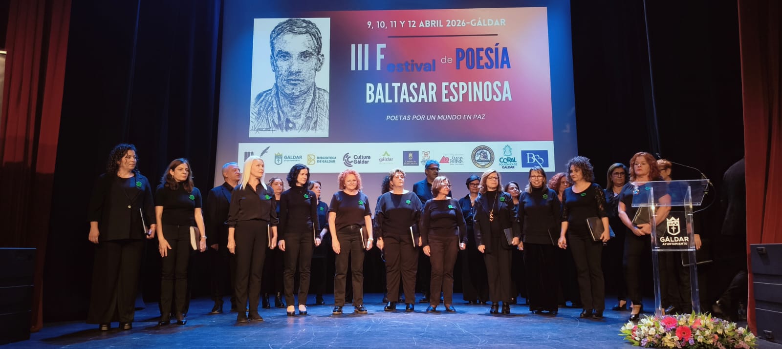 El evento, que contó con un teatro desbordante de público, concluyó con la actuación de la Coral Polifónica de Gáldar, quien embelleció con sus voces una intensa velada de poesía.